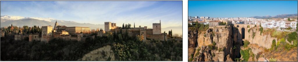 - RONDA (8:30 – 16:00) to miasto na wys. 740 m n.p.m., które na pół dzieli około 100-metrowy wąwóz El Tajo, a łączy ogromny most Puente Nuevo, zawieszony na skałach. Rondę założyli Celtowie w VI wieku p.n.e. Most kamienny łączy dwie dzielnice: chrześcijańską El Mercadillo i starszą, mauretańską La Ciudad. Andaluzja była arabska przez 800 lat, do późnego XV wieku! Rondę upodobał sobie austriacki pisarz i poeta Rainer Maria Rilke. W Rondzie bywał też malarz Francisco de Goya zafascynowany corridą, którą zresztą malował oraz pisarz E. Hemingway. Przejazd do SETENIL – andaluzyjskiego białego miasta zlokalizowanego pod skalnymi wycięciami w skałach z licznymi sklepikami i restauracjami. Przewodnik miejscowy. Koszt 60 euro/os.2/