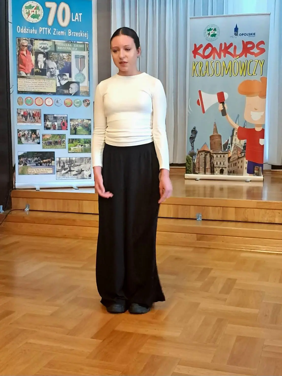 Pięcioosobowe jury w składzie: p. Sylwia Jamka (przewodnicząca), p. Tadeusz Jurek, p. Lucyna Mystek, p. Elżbieta Stankiewicz – Klimek, oraz p. Grażyna Tymecka przyznawało punkty za: zgodność prezentowanych treści z tematyką konkursu, ogólną prezentację tematu, konstrukcję i sugestywność wypowiedzi, jasne i logiczne formułowanie myśli, płynność oraz poprawność wyrażania się, bogactwo języka i jego barwność, dostosowanie tekstu do osobowości i wieku występującego oraz kontakt ze słuchaczami. Jak widać wyzwanie niemałe, ale 24 uczestników świadczy o tym, że ciągle znajdują się pasjonaci – uczniowie i nauczyciele szkół podstawowych, którzy podejmują się tego niełatwego zadania. W tym roku po raz trzeci Julia Konieczko z PSP Nr 5 przygotowana przezp. Jolantę Wąsik i Jaśmina Kużdżał z PSP Nr 1 przygotowana przez p. Marzenę Kulebę będą reprezentowały województwo opolskie na Ogólnopolskim Konkursie Krasomówczym w Legnicy, w dniach od 27 do 30 listopada, gdzie spotkają się uczniowie z całej Polski, aby prezentować swoje umiejętności krasomówcze. W tym przypadku jury nie miało żadnych wątpliwości. Obydwie dziewczynki otrzymały maksymalną liczbę punktów, co zdarzyło się po raz pierwszy w czterdziestoletniej historii tego konkursu. A trzeba przyznać, że ich wystąpienia były całkowicie odmienne. Jaśmina z wielką dbałością i wrażliwością wprowadziła słuchaczy w świat śląskiego kopciuszka, czyli Joasi Gryzik von Schaffgotsch, natomiast Julia spontanicznie i żywiołowo opowiadała o brzeskich piastoludkach. Życzymy im powodzenia w Legnicy!