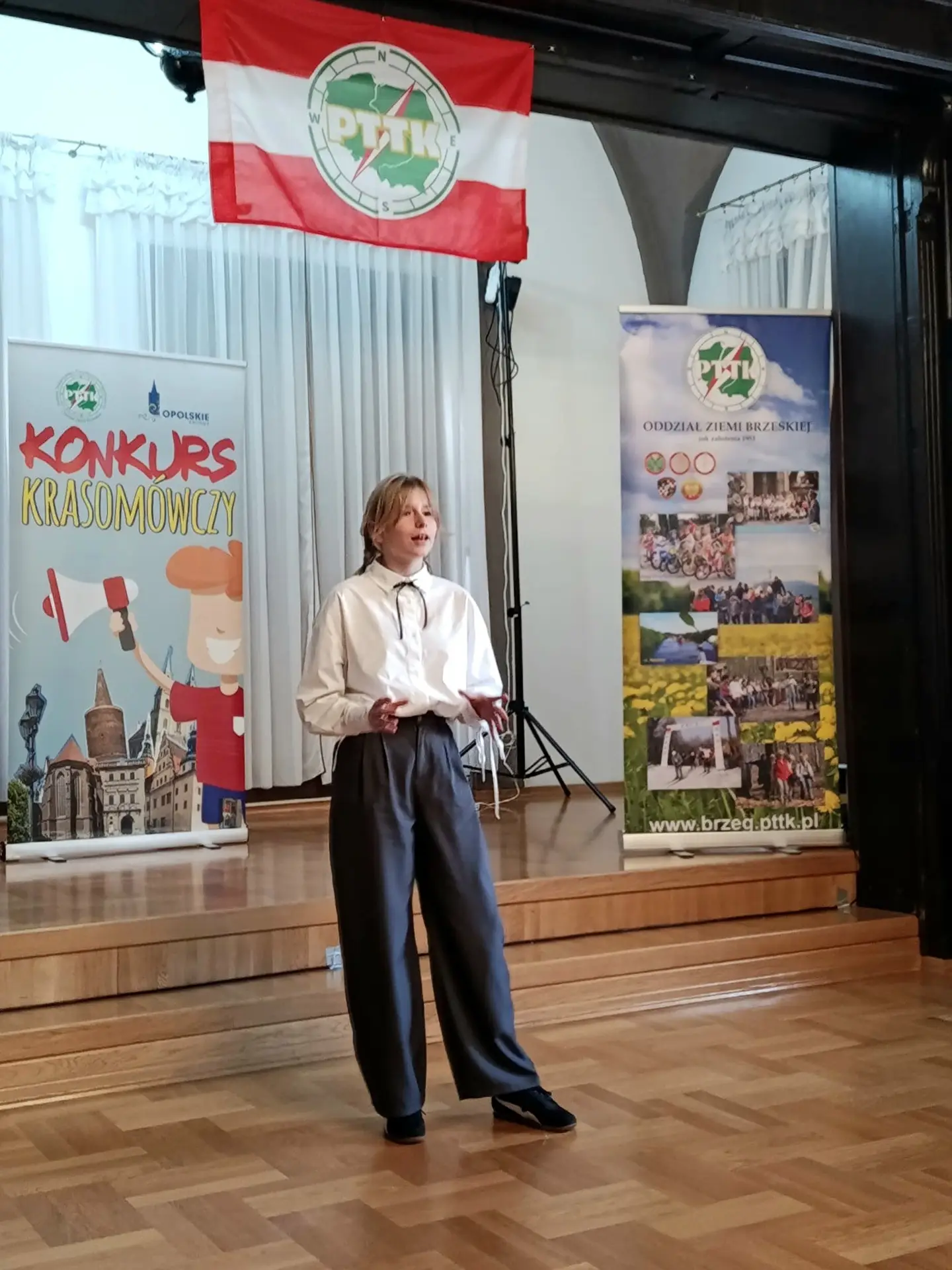 To tytuł tekstu wygłoszonego przez Wiktorię Jaworską, uczennicę klasy IV z PSP Nr 1 w Brzegu w czasie eliminacji wojewódzkich XLI Ogólnopolskiego Konkursu Krasomówczego Dzieci i Młodzieży Szkolnej, które odbyły się 25 października 2025 r. w Brzegu. Wiktoria zajęła II miejsce opowiadając w niezwykle urokliwy i przekonywający sposób o swojej szkole, która w tym roku obchodzi piękny jubileusz 80-lecia powstania. Uczennica przygotowana została przez p. Beatę Rudyk.